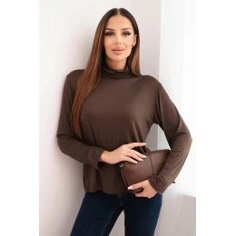 Dámská viskózová blůza s rolákem a dlouhým rukávem hnědá