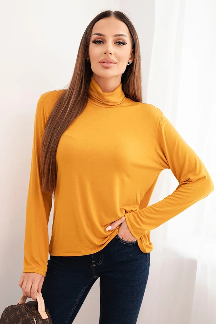 Dámská viskózová blůza s rolákem a dlouhým rukávem hořčicová