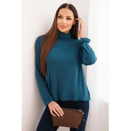 Dámská viskózová blůza s vysokým límcem a dlouhým rukávem mořská