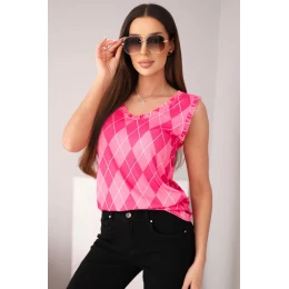 Dámská viskózová blůza s vzorem a volánkem u výstřihu fuchsie model 21954926 - K-Fashion