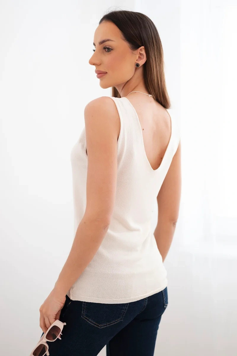Stylová dámská halenka bez rukávů s elegantním výstřihem do V je ideální volbou pro ženy, které si cení minimalistického stylu a pohodlí. Díky jednoduchému, přiléhavému střihu krásně zvýrazňuje postavu a skvěle poslouží jako základ pro mnoho módních outfitů. Halenka se výborně hodí jak k džínům, elegantním kalhotám, tak i k sukním a vytváří univerzální look do běžného dne, do práce nebo na setkání.