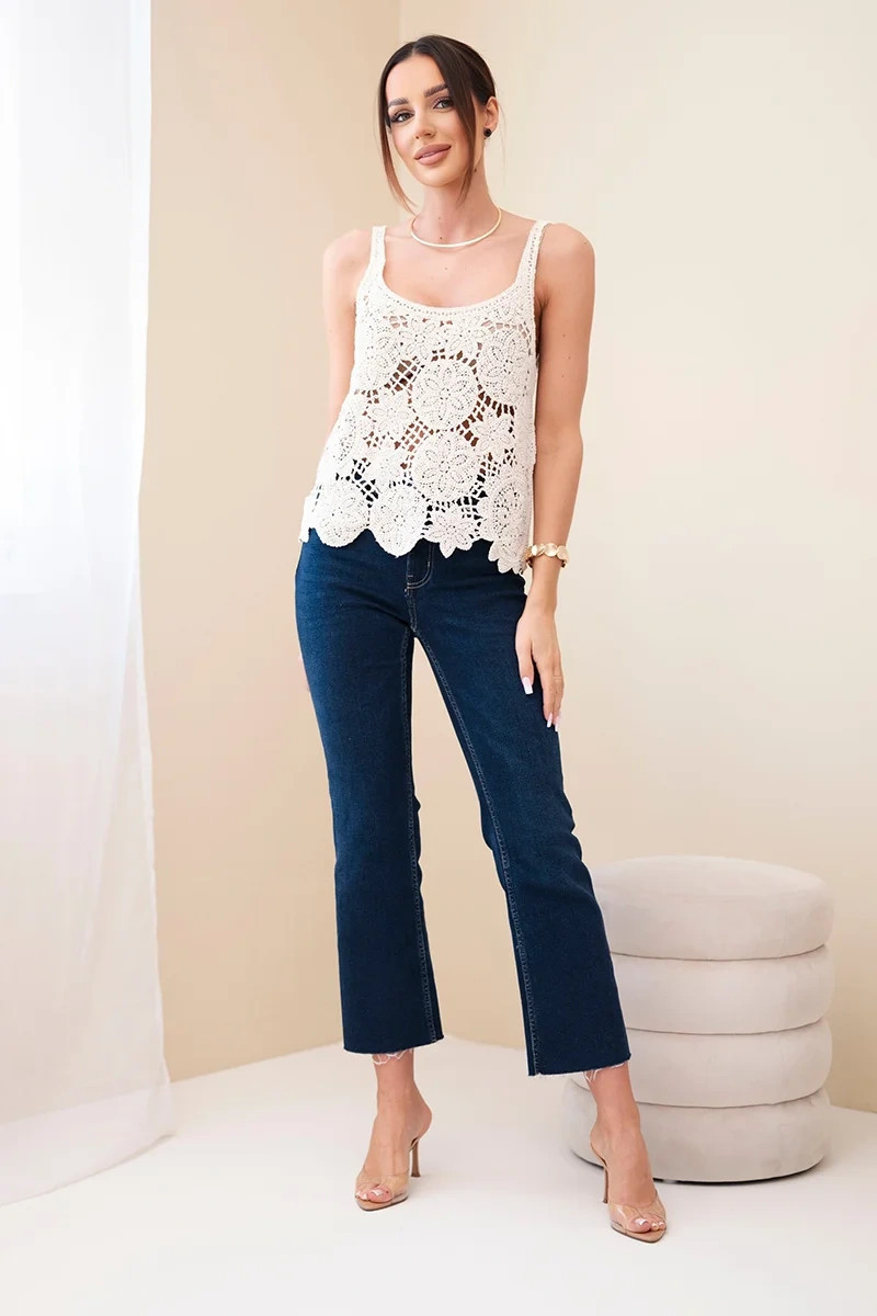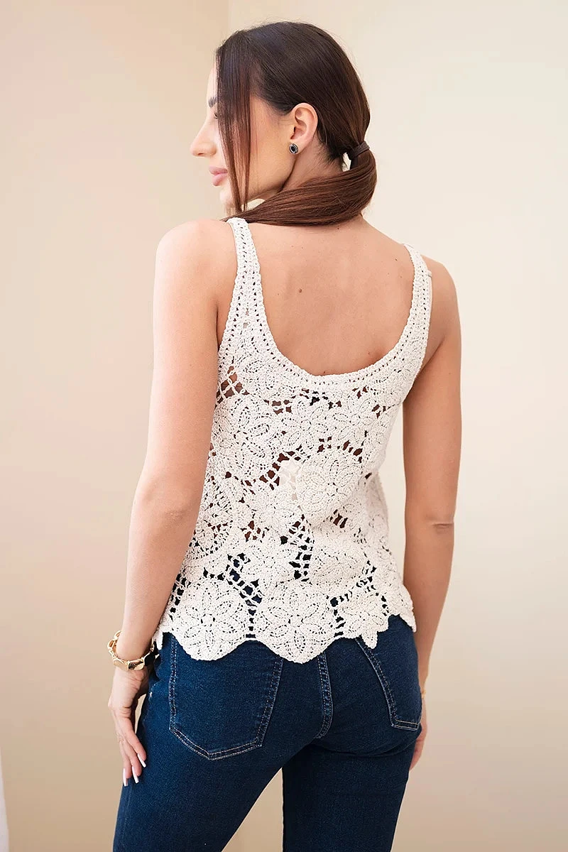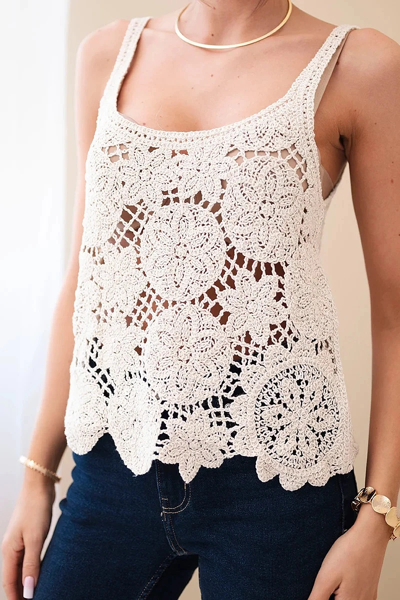 Der Träger-Schnitt sorgt für Komfort und Bewegungsfreiheit und macht die Bluse ideal für warme Tage. Der leicht ausgestellte Saum und die dekorative Verarbeitung verleihen ihr einen femininen Charakter und sorgen für eine schöne Passform. Sie lässt sich leicht mit Jeans, Shorts oder einem Rock kombinieren.
