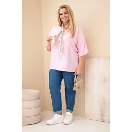 Dámská viskózová halenka Plus Size s krátkým rukávem a ozdobným šátkem bonbónově růžová