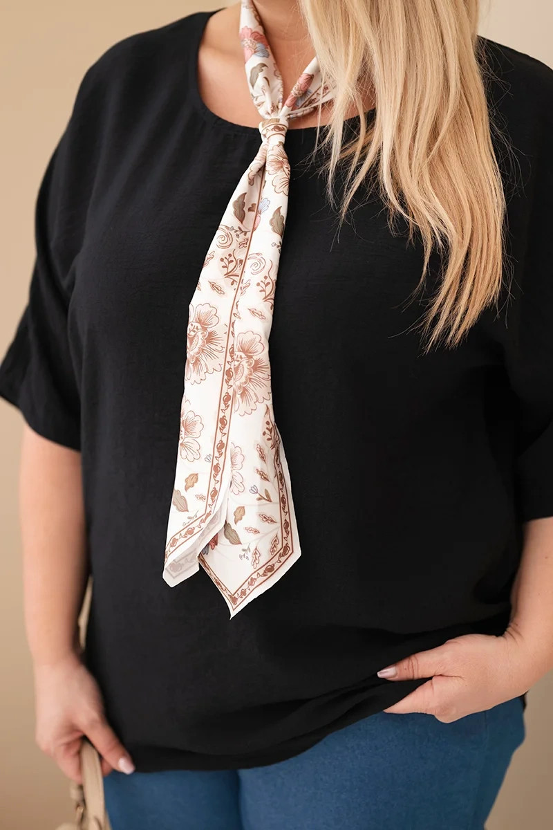 Dámská viskózová halenka Plus size s krátkým rukávem a ozdobným šátkem černá