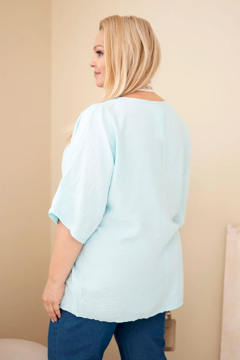 Dámská viskózová halenka Plus Size s krátkým rukávem a ozdobným šátkem mentolová