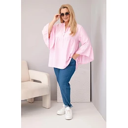 Dámská viskózová halenka Plus Size s model 22043036 rukávem a výstřihem do V cukrově růžová - K-Fashion