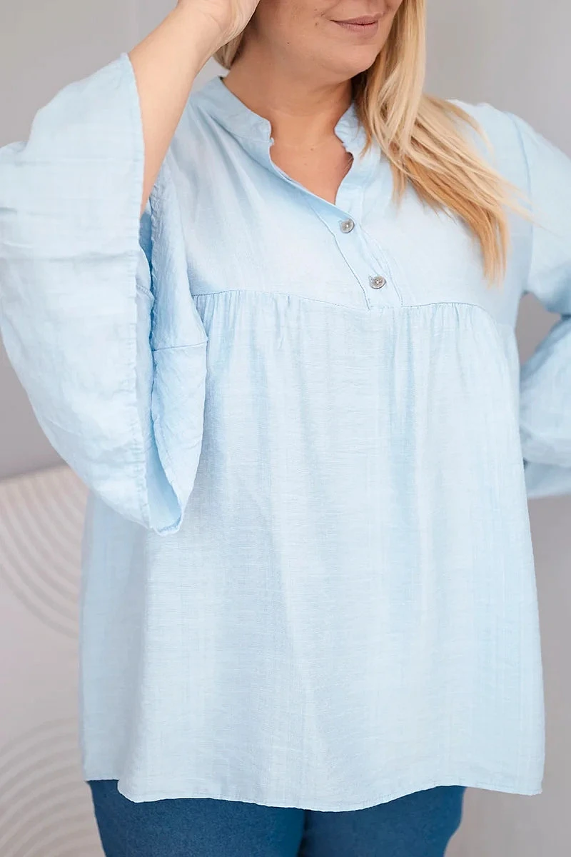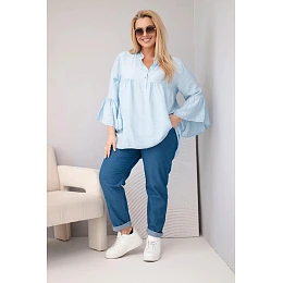 Dámská viskózová halenka Plus Size s model 22043148 rukávem a výstřihem do V modrá - K-Fashion