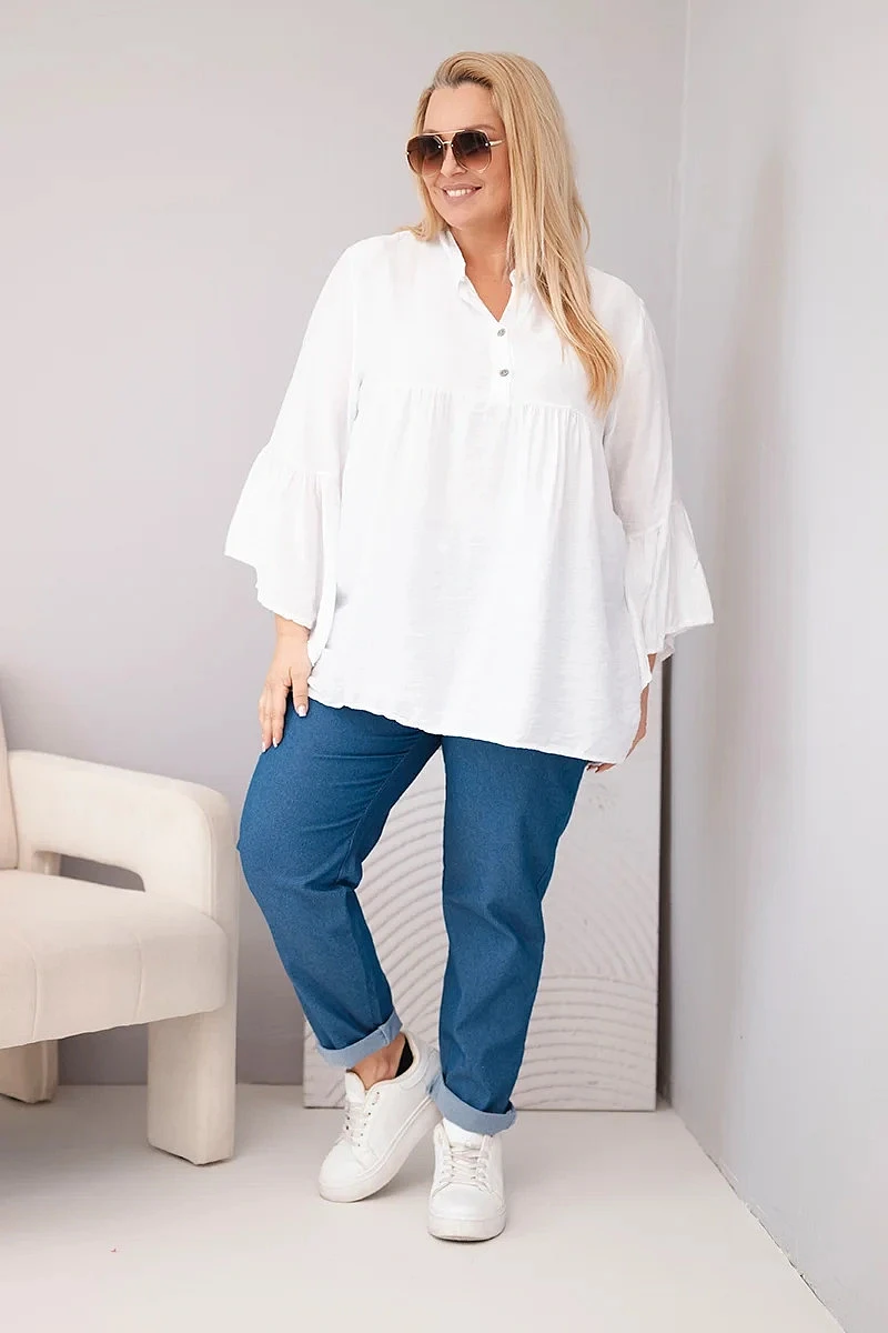 Dámská viskózová halenka Plus Size s model 22043156 rukávem a výstřihem do V bílá - K-Fashion