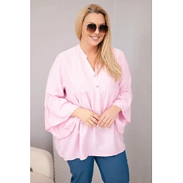 Dámská viskózová halenka Plus Size s volánovým rukávem a výstřihem do V cukrově růžová