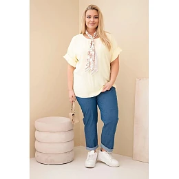 Dámská viskózová halenka pro model 22043082 s krátkým rukávem a ozdobným šátkem žlutá - K-Fashion