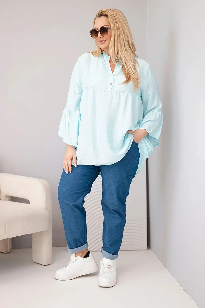 Dámská viskózová halenka ve velikosti Plus Size s volánkovým rukávem a výstřihem do V mentolová