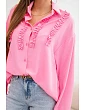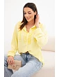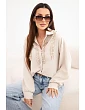 Dámská košile je doplněná dekorativními volánky po celé přední části, které jí dodávají jemnou lehkost a ženské kouzlo. Dlouhý rukáv zakončený manžetou podtrhuje elegantní styl modelu a volnější střih zajišťuje pohodlí po celý den. Je to ideální volba do práce, na obchodní schůzky i na běžné nošení k džínům nebo elegantním kalhotám.