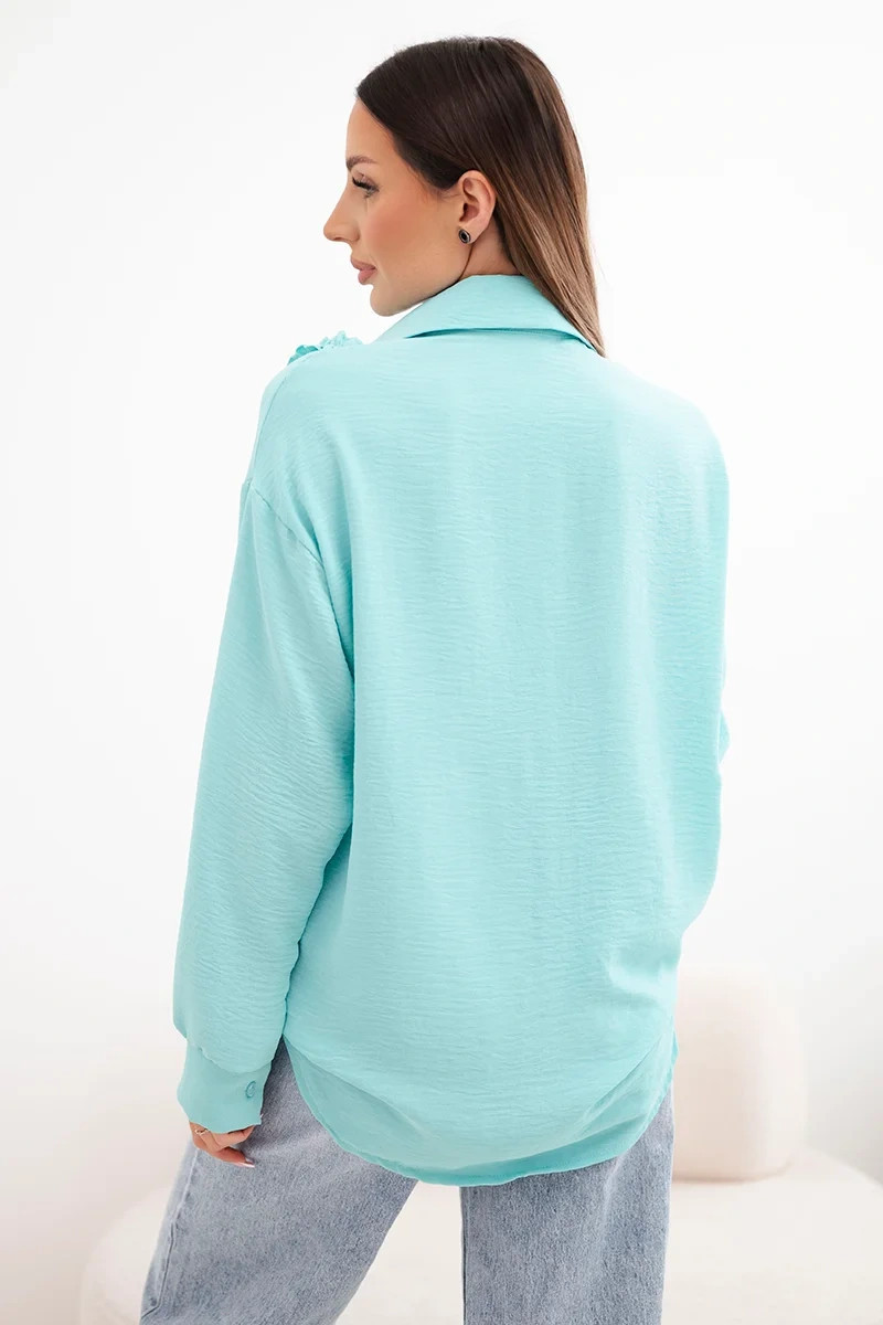 Dámská viskózová košile s dlouhým rukávem a volánky mentolová