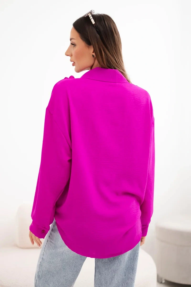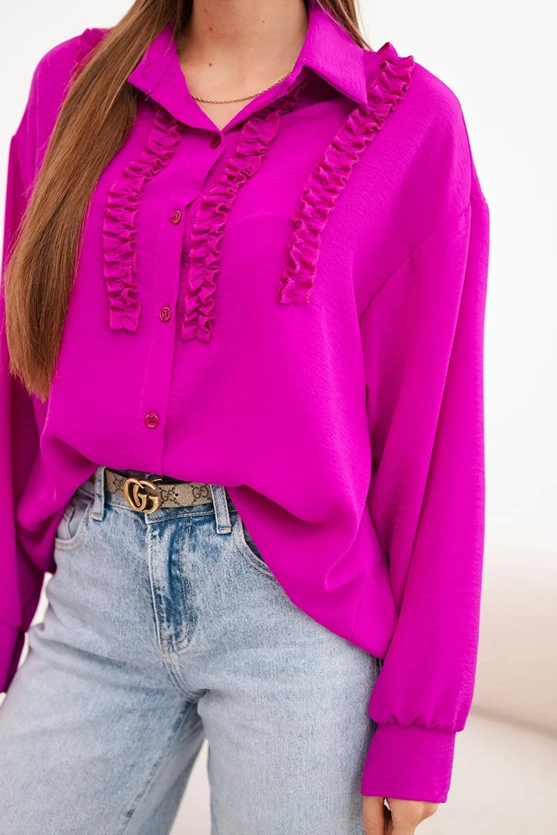 Dámská viskózová košile s dlouhým rukávem a volány tmavě fialová