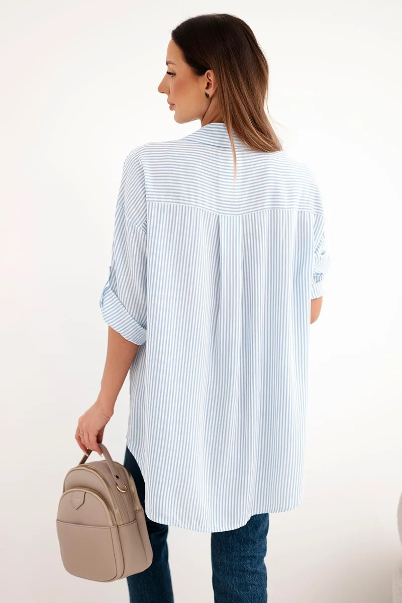 Volný střih s prodlouženým zadním dílem a 3/4 rukávy s možností ohrnutí skvěle poslouží jak v casual, tak v elegantnějších stylizacích. Kombinujte ji s džíny, legínami nebo sukní a užijte si pohodlí a módní vzhled. Italská výroba je zárukou kvality a stylového střihu.