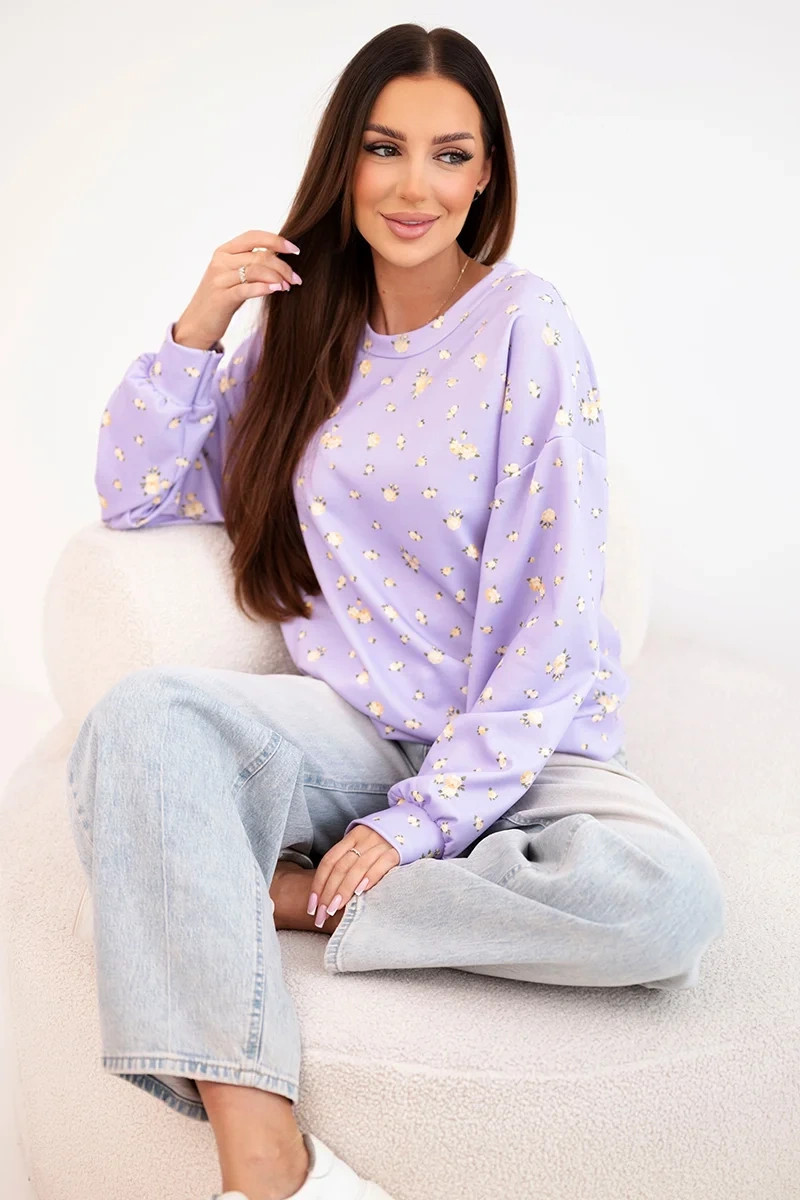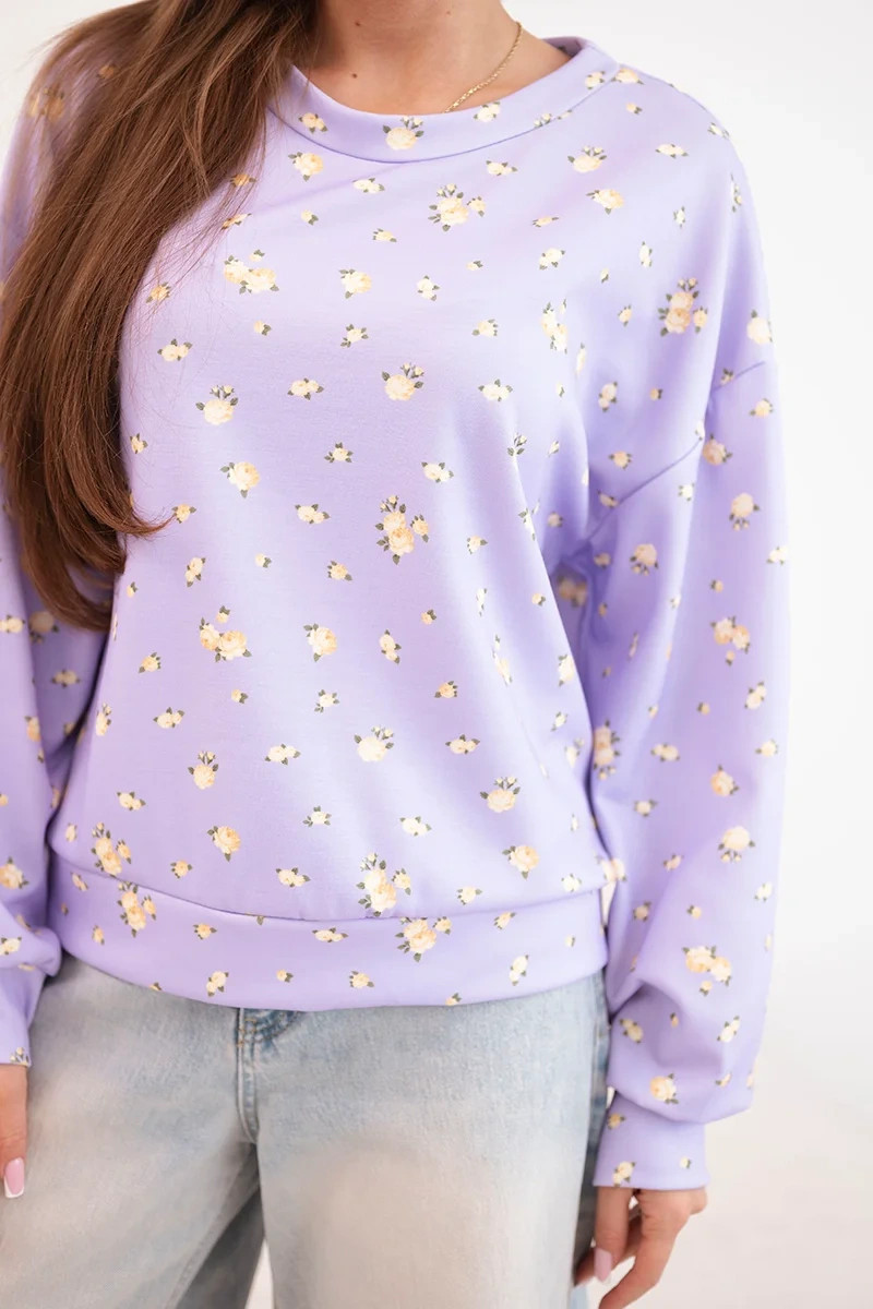 Dámská viskózová mikina s dlouhým rukávem v drobných květinách fialová