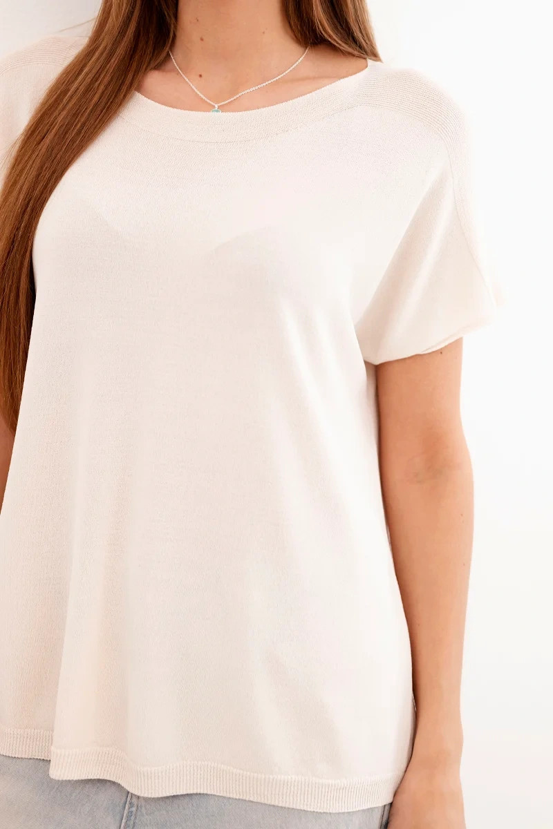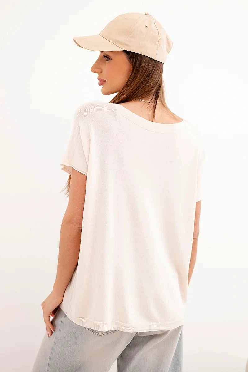 Dámská viskózová oversize halenka s krátkým rukávem a kulatým výstřihem béžová
