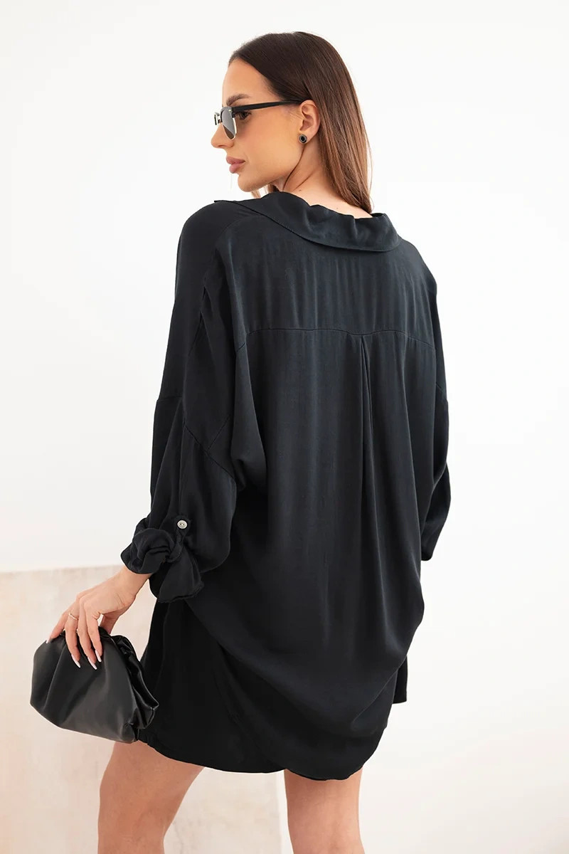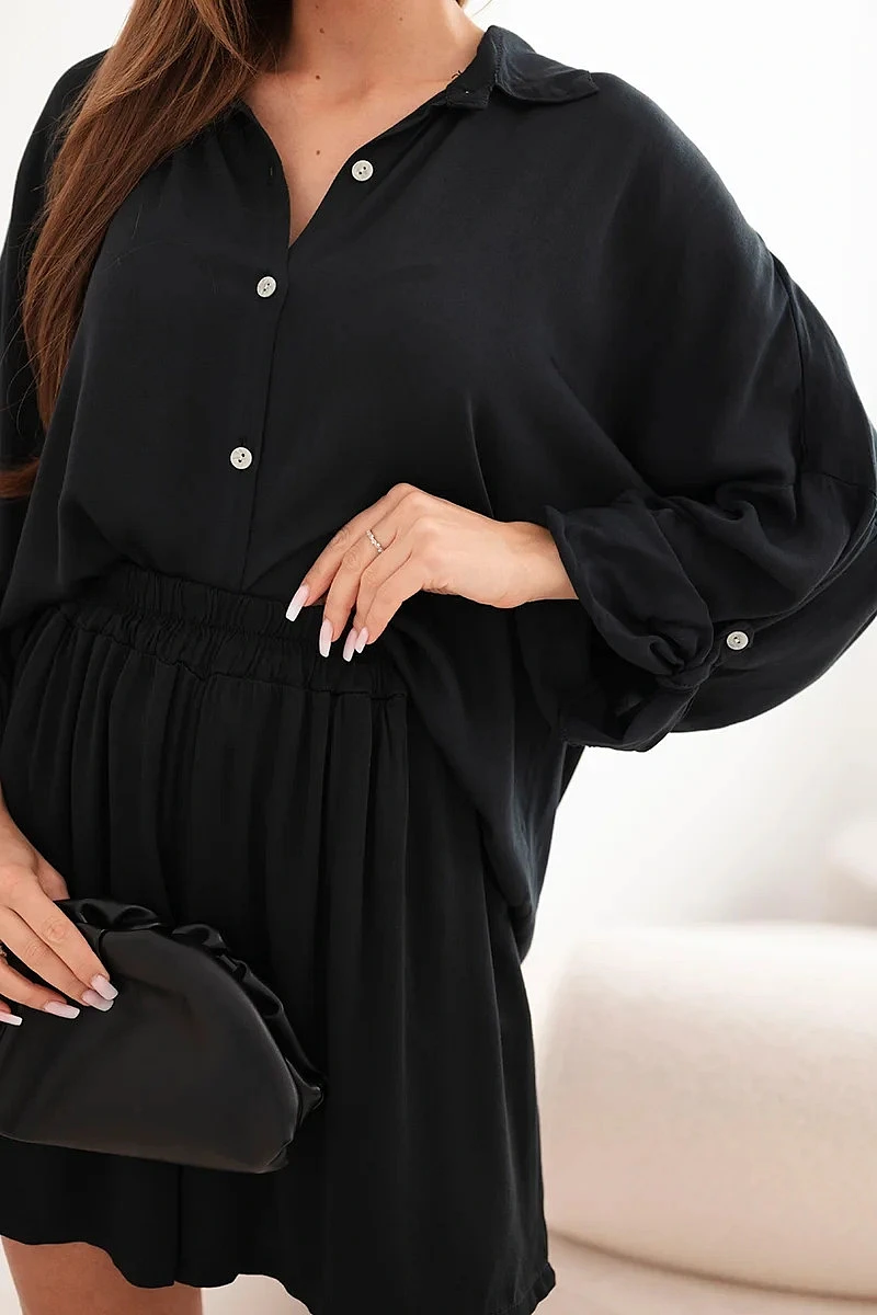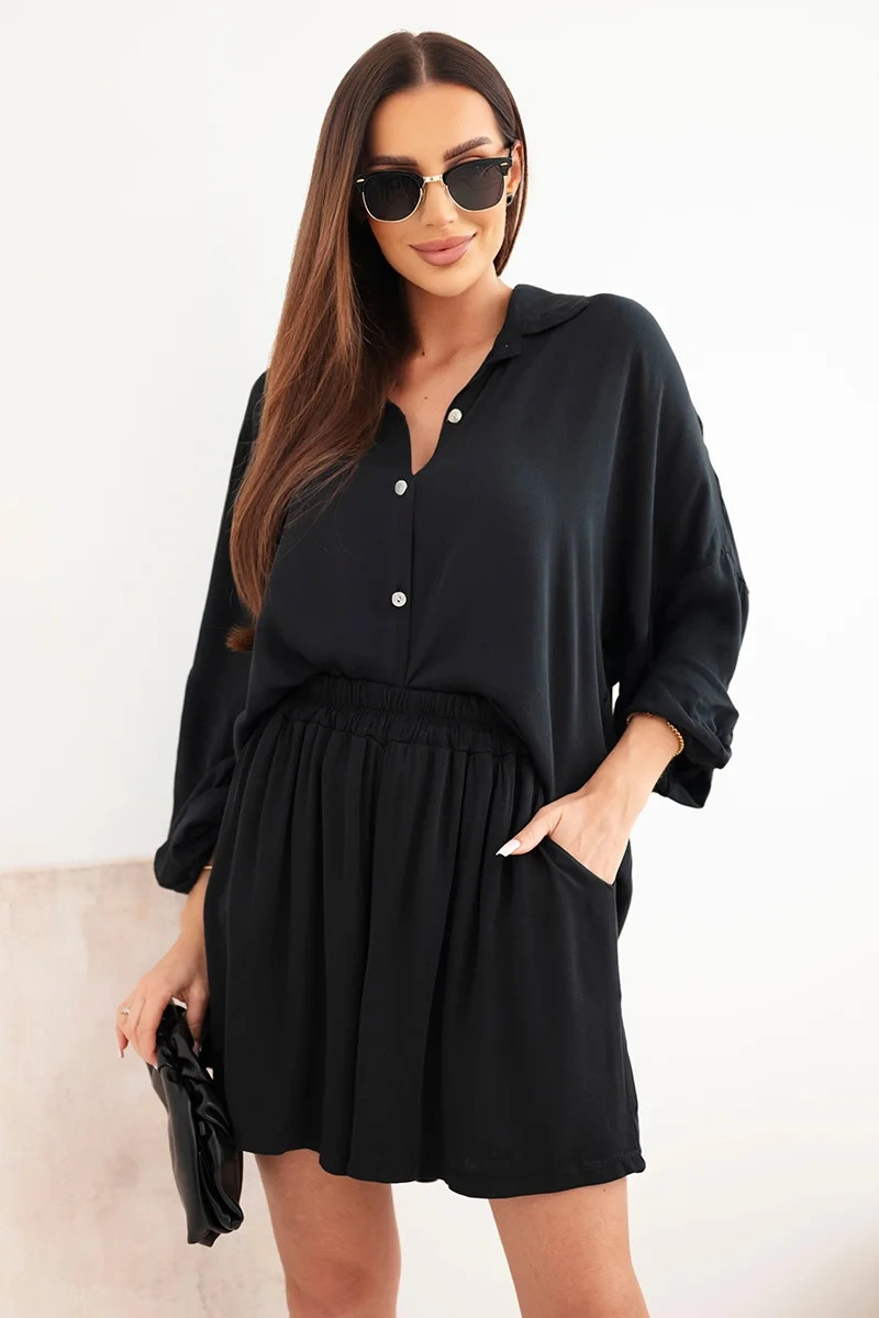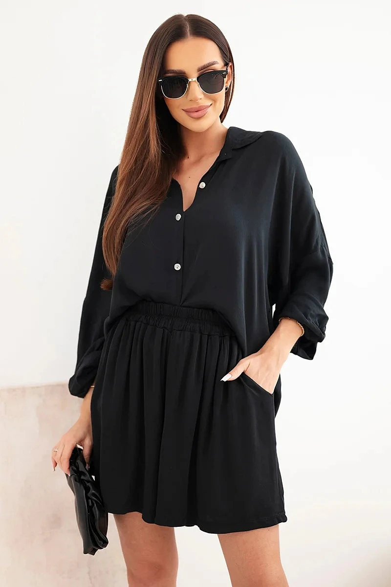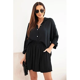 Dámská viskózová souprava: košile s knoflíky a volné šortky černý