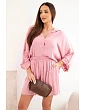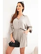 Košile volného střihu má klasický límeček a rukávy s možností ohrnutí, což jí dodává univerzální charakter. Šortky s nařaseným pasem se skvěle přizpůsobí tělu a neomezují pohyb. Tento dámský komplet se hodí jak do běžného nošení, tak na dovolené, procházky nebo setkání s přáteli. Můžete jej nosit jako celek nebo jednotlivé části kombinovat samostatně a vytvářet různorodé stylizace.