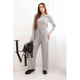 Dámská viskózová souprava s halenkou a širokými kalhotami šedá