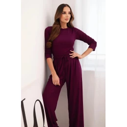 Dámská viskózová souprava s halenkou a širokými kalhotami tmavě fialová