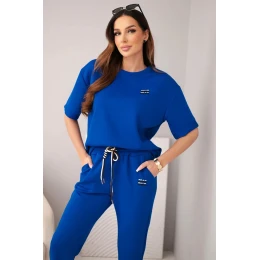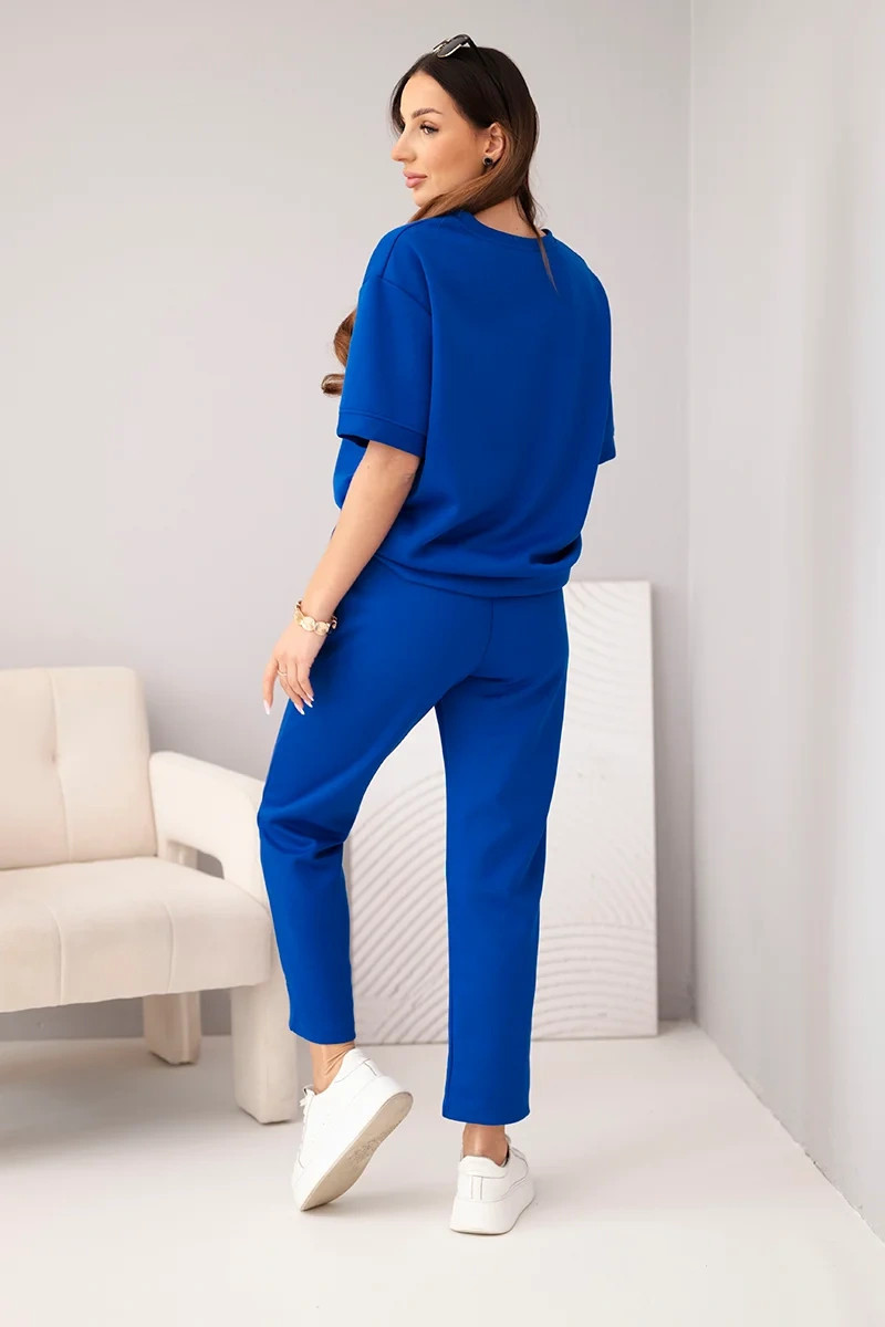 Dámská viskózová souprava s krátkým rukávem a kalhotami s ohrnovací nohavicí chabrový