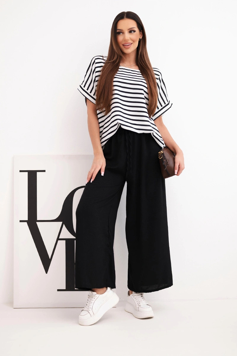Dámská viskózová souprava s model 21951965 blůzou a širokými kalhotami s gumou černý - K-Fashion