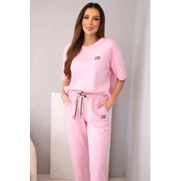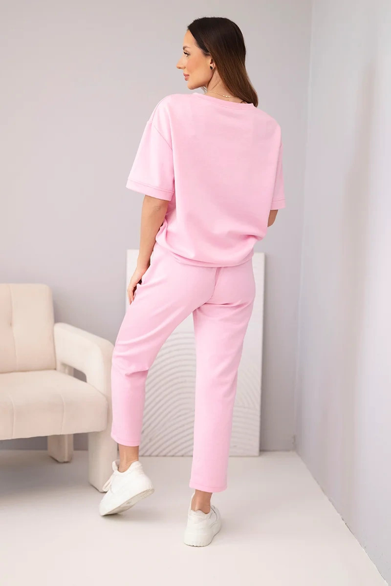 Dámská viskózová souprava s model 22030092 efektem s krátkým rukávem a kalhotami s ohrnutými nohavicemi světle růžová - K-Fashion