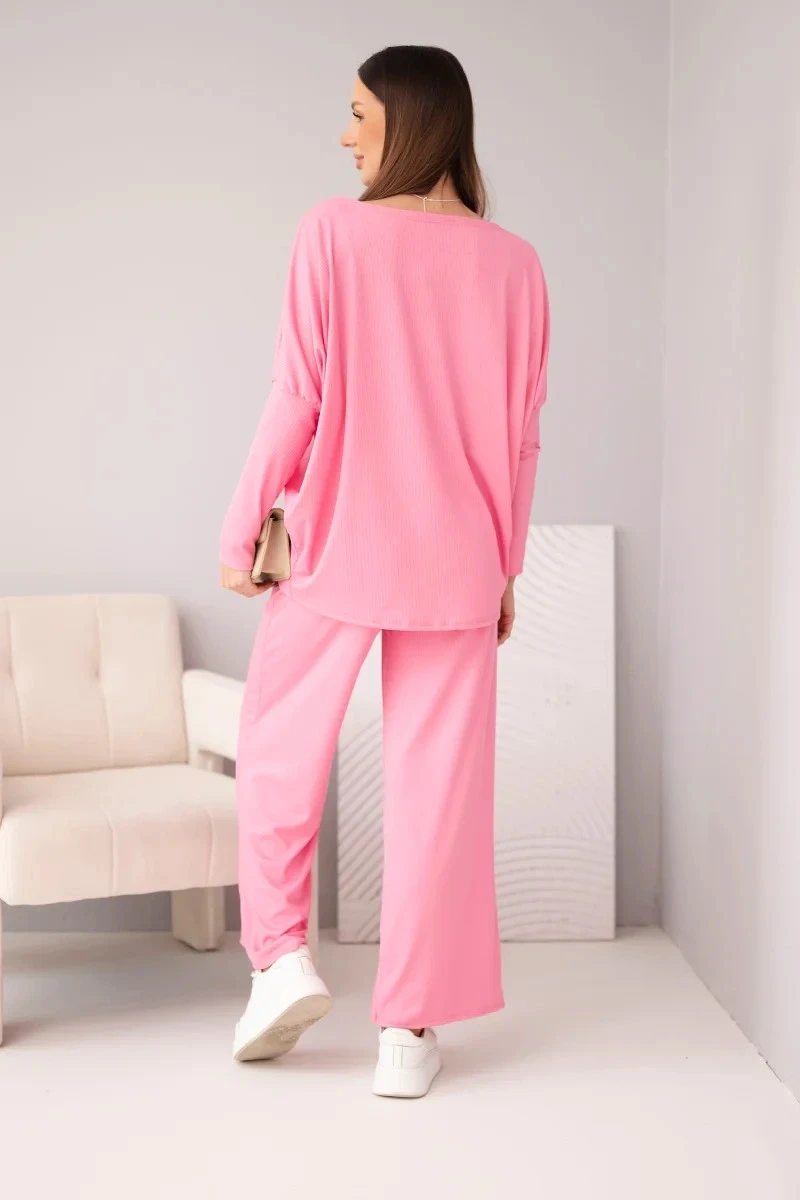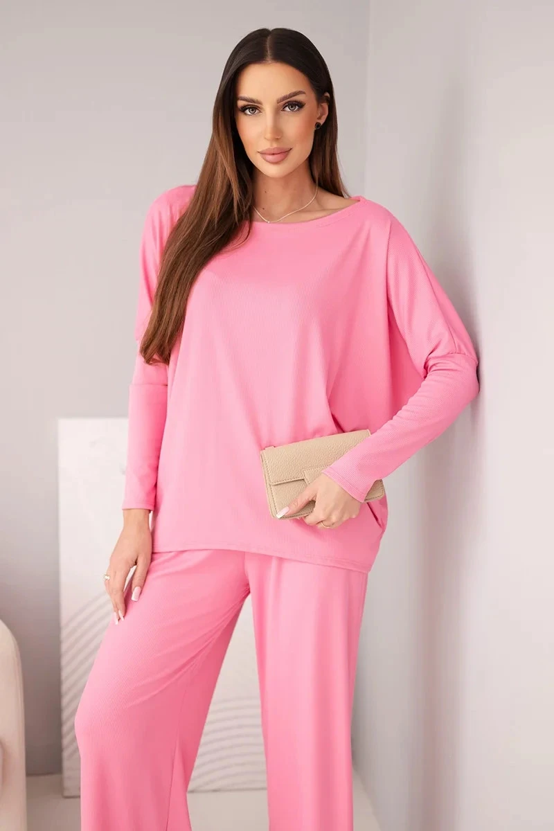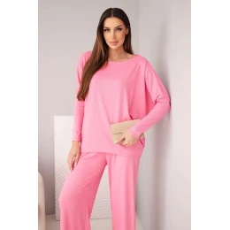 Dámská viskózová souprava s volnou blůzou a kalhotami světle růžový