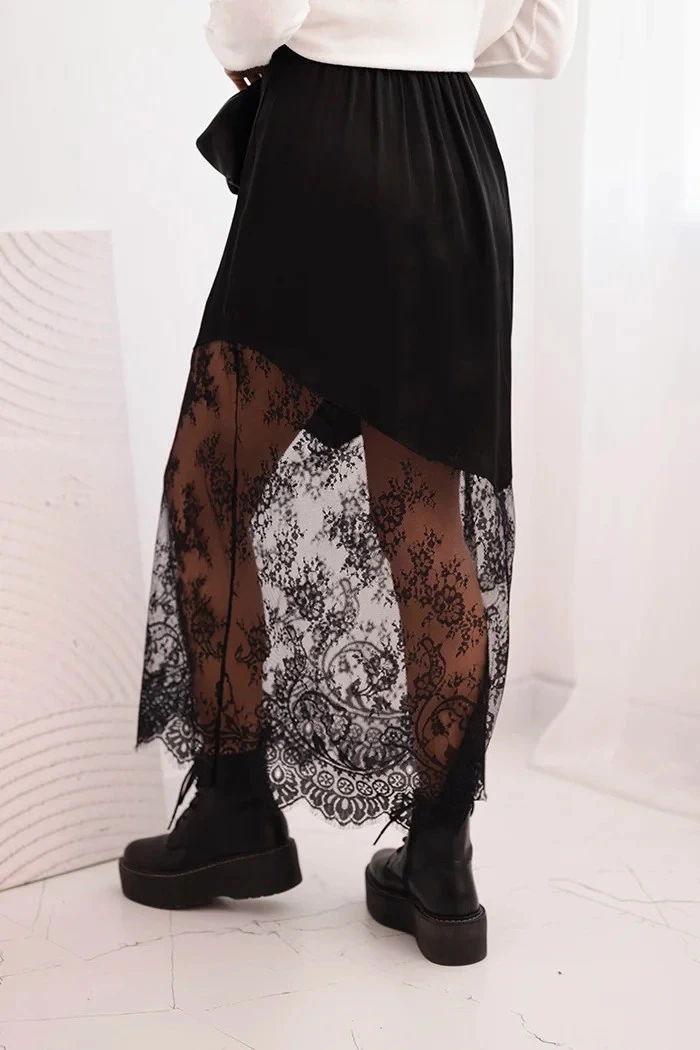 Dámská viskózová sukně s krajkou černá