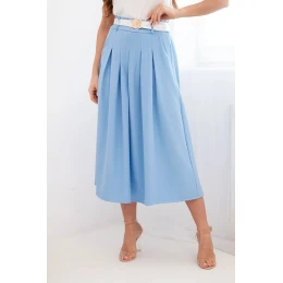 3. Dámská viskózová sukně s páskem a záhyby modrá