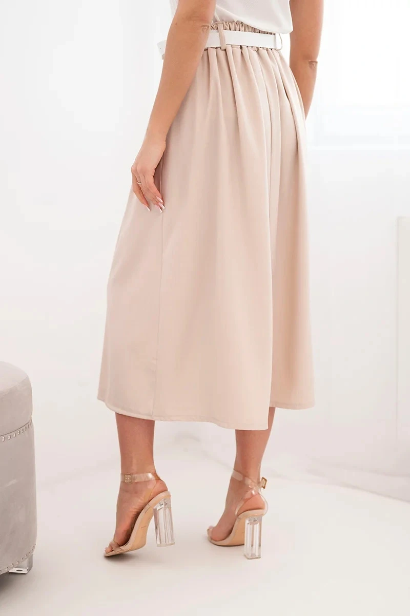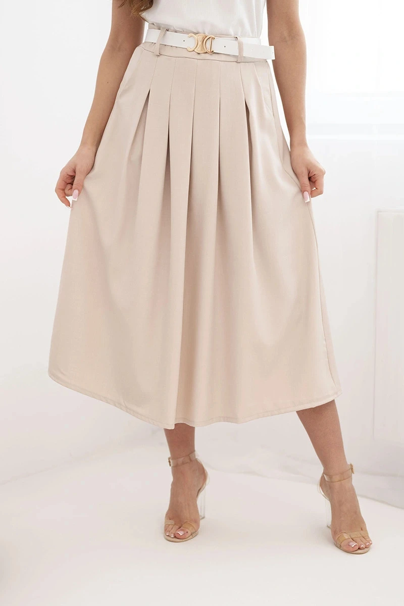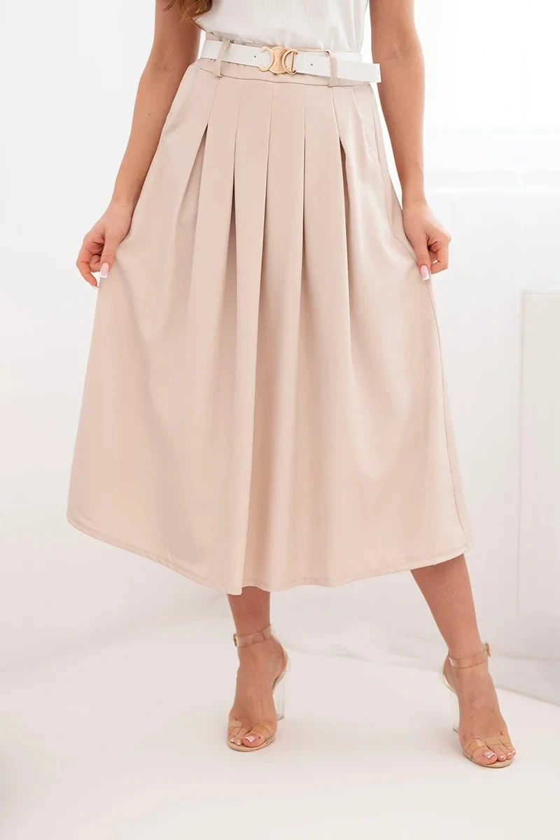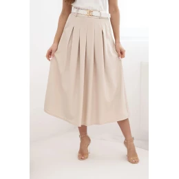 Dámská viskózová sukně s páskem a záhyby tmavě béžová