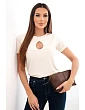 Dámská viskózová žebrovaná halenka s ozdobným výstřihem u dekoltu bílá