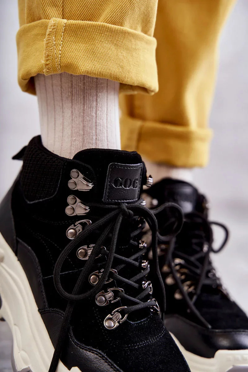 Sportovní obuv GOE vám poskytne pohodlí a komfort při používání. Vyrobeno z kombinace přírodního semiše a přírodní kůže, stélka je vyrobena z ekologické kůže. Klasický krajkový model. Tyto boty byly namontovány na masivní platformě. Vysoký svršek stabilizuje nohu při procházkách nebo výletech. Tento model by neměl chybět ve vašem šatníku! Při výběru velikosti použijte tabulku velikostí.