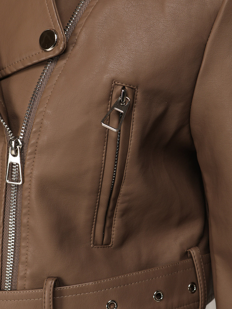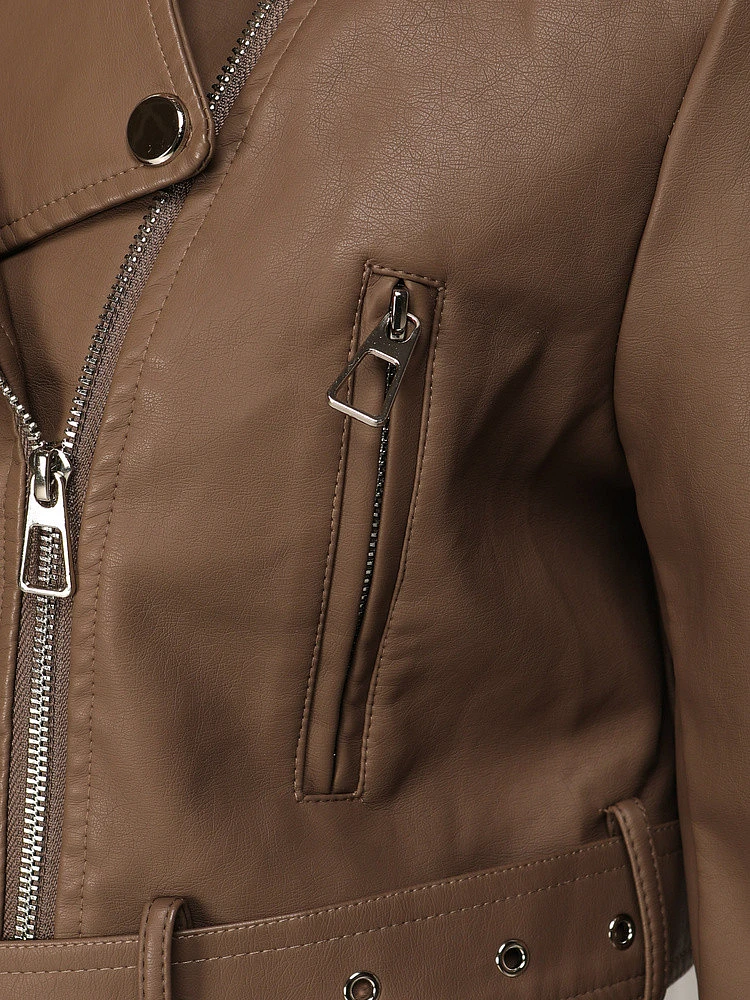 Kurtka damska ramoneska skórzana TY5673 jasnobrązowa