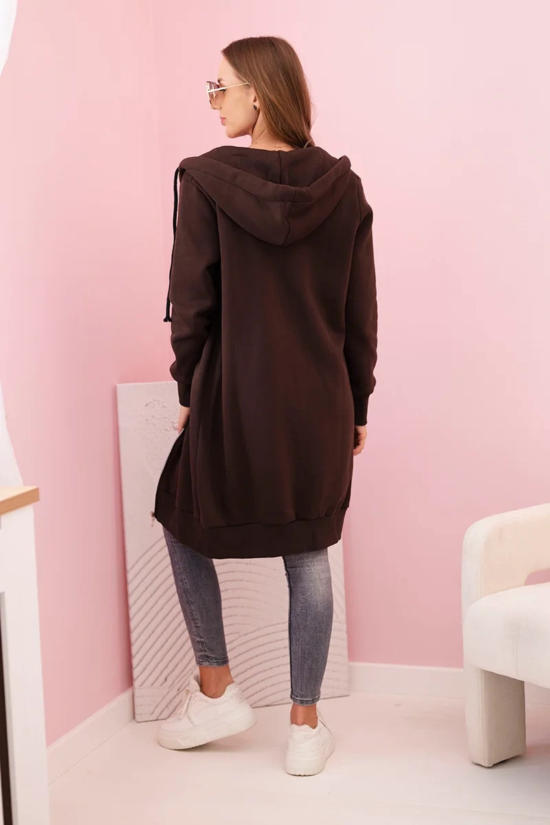 Dámská zateplená mikina s kapucí a zipem hnědý