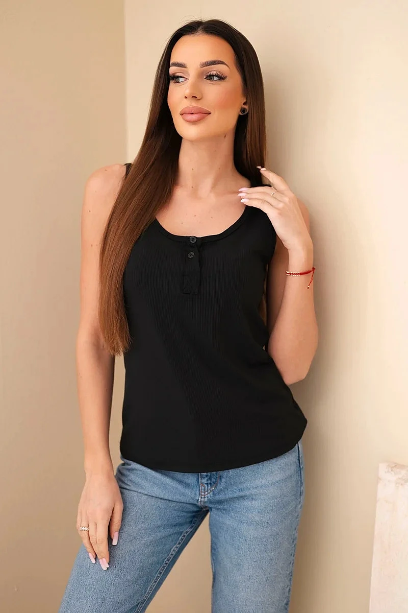 Dámská žebrovaná halenka na ramínkách s knoflíkem černá