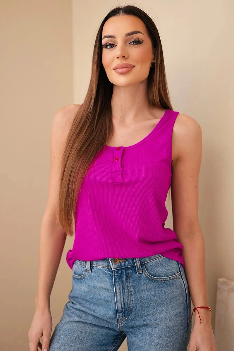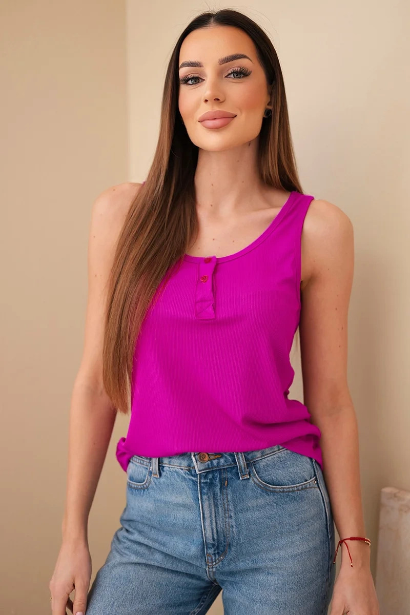 Dámská žebrovaná halenka na ramínkách s knoflíkem tmavě fialová
