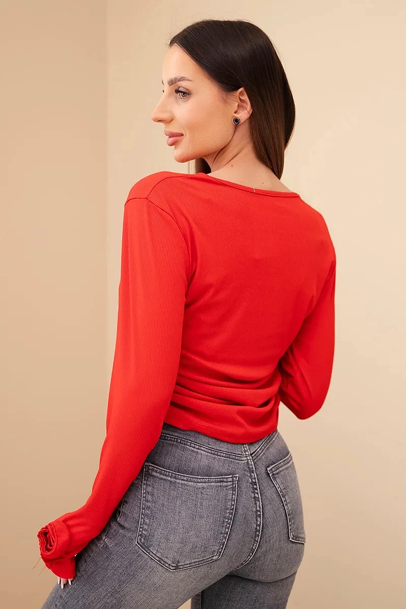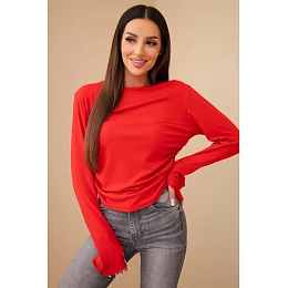Dámská žebrovaná halenka s nařasením na boku červená