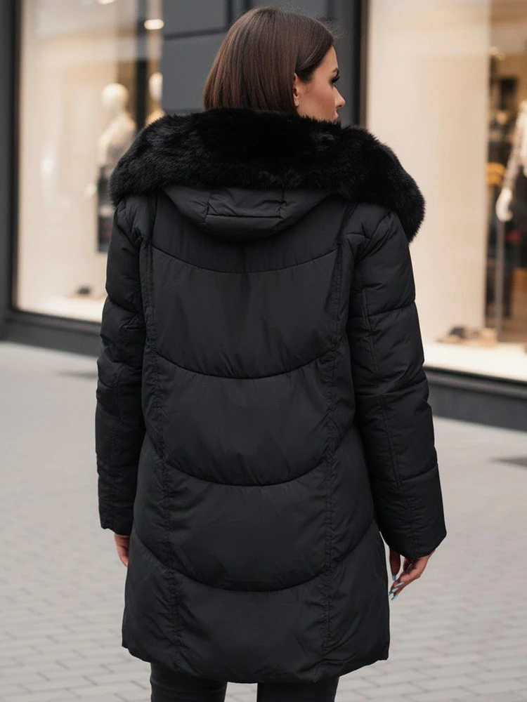 Kurtka damska zimowa długa pikowana z futerkiem MORISIO