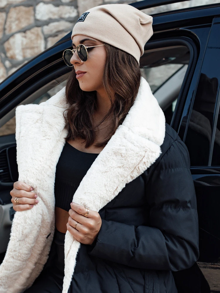 Kurtka damska długa z futerkiem BALLMODA