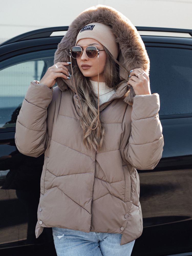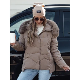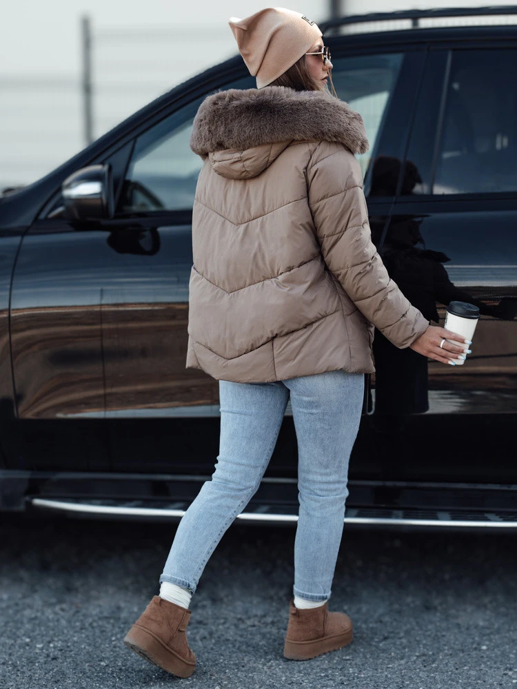 Dámská zimní bunda FIXMIX prošívaná s kapucí tmavě béžová FashionStreet TY4674