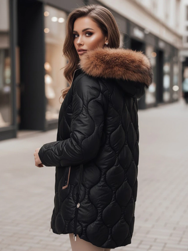 Kurtka damska zimowa pikowana z kapturem LUMORE