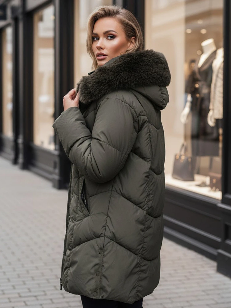 Dámská zimní dlouhá prošívaná bunda s kožešinou MORISIO