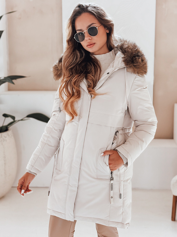 Dámská zimní bunda parka s kapucí světle béžová Dstreet model 21991276 - FashionStreet