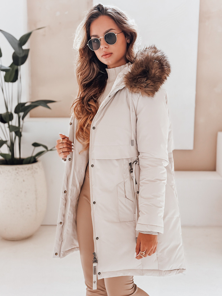 Damska kurtka zimowa parka TY5083 jasnobeżowa