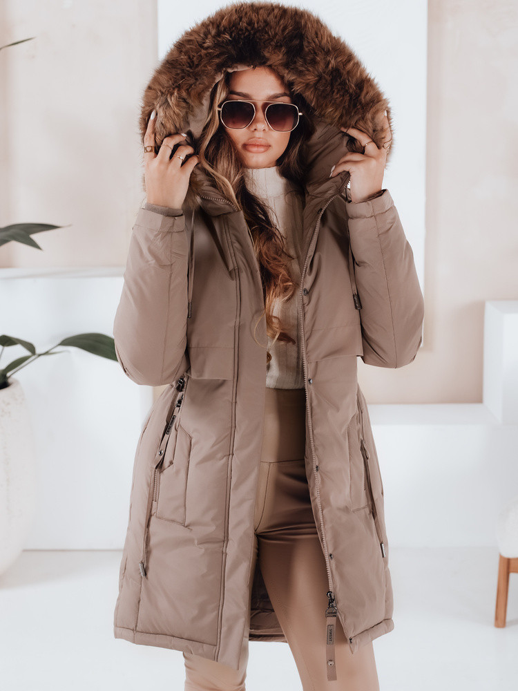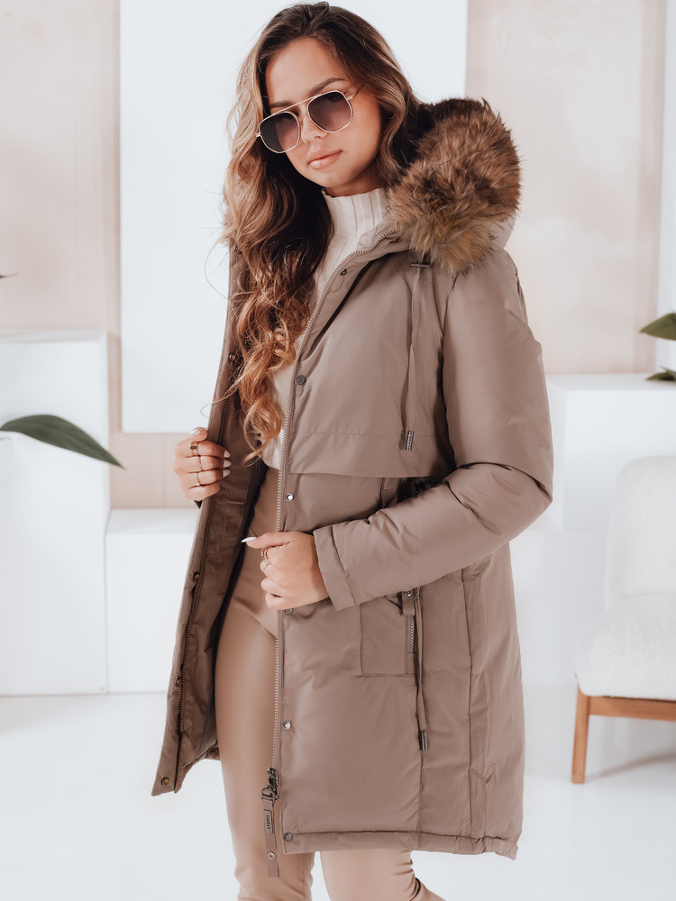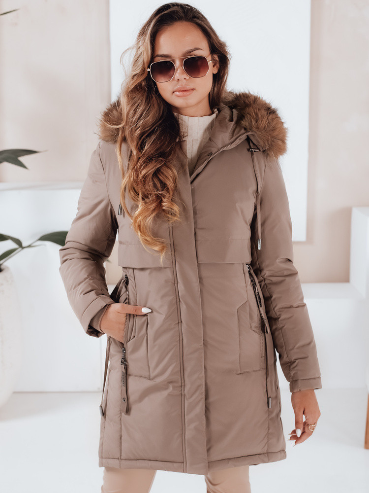 Dámská zimní bunda parka s kapucí tmavě béžová FashionStreet TY5084