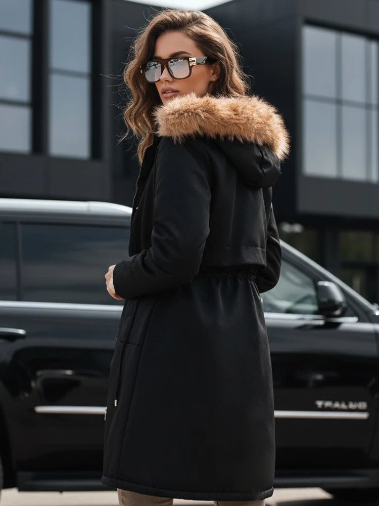 Zimní bunda parka TY5115 je model stvořený pro chladné dny. Vnitřní kožešina a prodloužený střih zaručují tepelný komfort, zatímco stylové detaily, jako je kožešina na kapuci a regulace v pase, dodávají ženský nádech. Uplatní se při každodenních stylizacích.