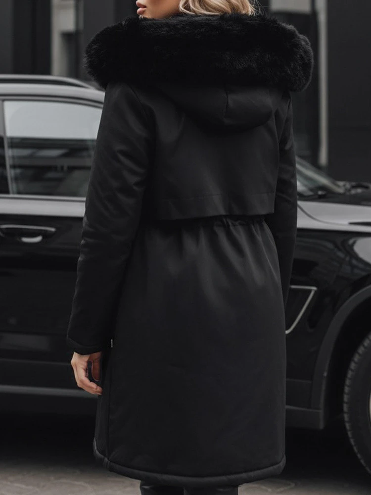 Dámská zimní bunda parka s kožešinou černá model 21991646 - Dstreet
