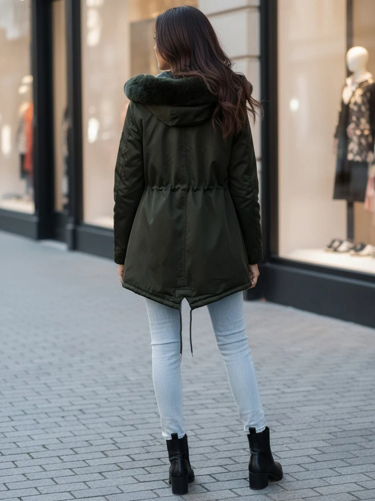 Nowoczesna parka pikowana ERISS dla kobiet, które cenią sobie elegancję i funkcjonalność. Lekka, ale niezwykle ciepła, idealna na chłodne dni. Wykończona eleganckim futrem na kapturze, dodaje luksusowego wyglądu każdej stylizacji. Liczne kieszenie oraz regulacja w pasie zapewniają praktyczność i wygodę. Idealna do codziennego noszenia oraz na specjalne okazje. Świetnie komponuje się z różnymi elementami garderoby, od jeansów po bardziej formalne stroje. Wybierz ją, aby zawsze czuć się modnie i komfortowo.
